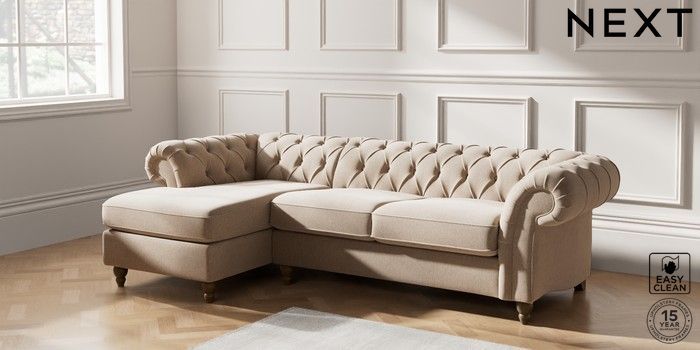 7.2.10 Gosford II Deep Sit Medium Sofa Chaise - Left Hand Tweedy Blend Easy Clean Light Dove Natural Low Turned - Mid | Made Click here to use our website with more accessibility support, for example screen readers
