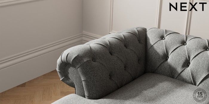 7.2.10 Gosford II Deep Sit Medium Sofa Chaise - Left Hand Tweedy Chenille Dark Grey Modern Turned Metal Cap - Mid | Made Click here to use our website with more accessibility support, for example screen readers
