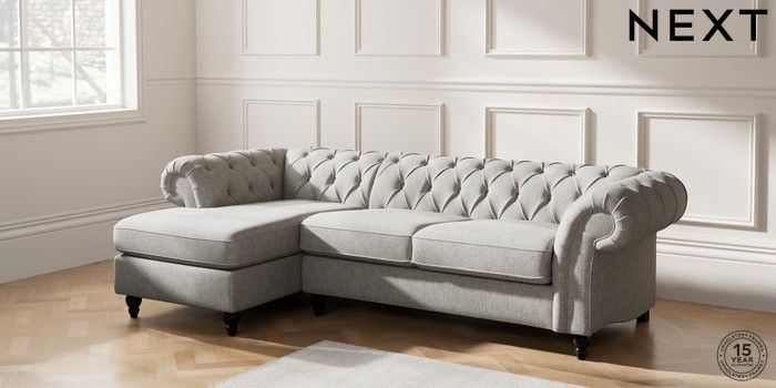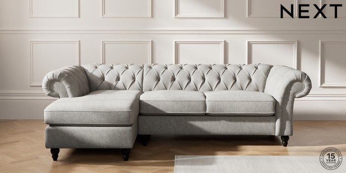 7.2.10 Gosford II Deep Sit Medium Sofa Chaise - Left Hand Tweedy Chenille Mid Grey Low Turned - Dark | Made Click here to use our website with more accessibility support, for example screen readers