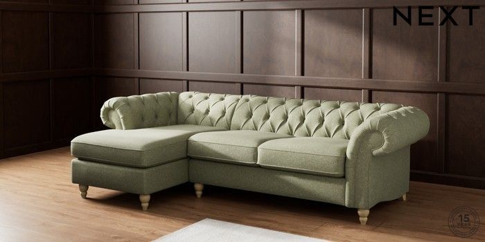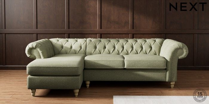 7.2.10 Gosford II Deep Sit Medium Sofa Chaise - Left Hand Tweedy Chenille Mid Moss Green Low Turned - Light | Made Click here to use our website with more accessibility support, for example screen readers