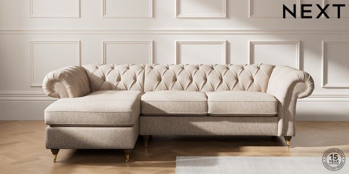 7.2.10 Gosford II Deep Sit Medium Sofa Chaise - Left Hand Tweedy Chenille Mid Natural Castor - Mid | Made Click here to use our website with more accessibility support, for example screen readers