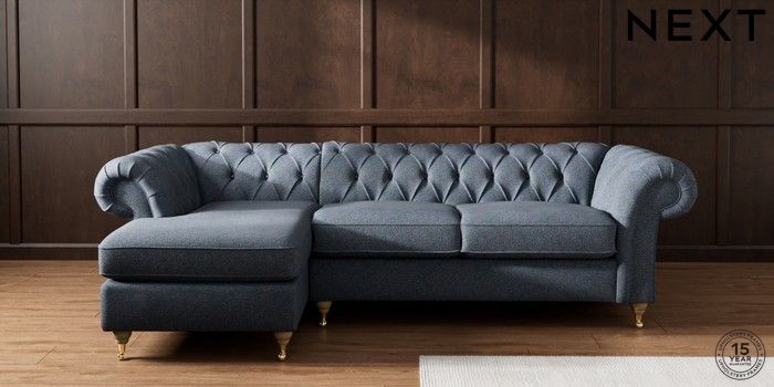 7.2.10 Gosford II Deep Sit Medium Sofa Chaise - Left Hand Tweedy Chenille Navy Blue Castor - Light | Made Click here to use our website with more accessibility support, for example screen readers