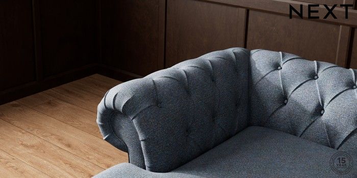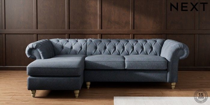 7.2.10 Gosford II Deep Sit Medium Sofa Chaise - Left Hand Tweedy Chenille Navy Blue Low Turned - Light | Made Click here to use our website with more accessibility support, for example screen readers