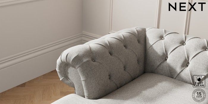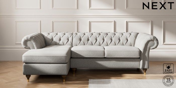 7.2.10 Gosford II Deep Sit Medium Sofa Chaise - Left Hand Woven Chenille Easy Clean Light Grey Modern Turned Metal Cap - Mid | Made Click here to use our website with more accessibility support, for example screen readers