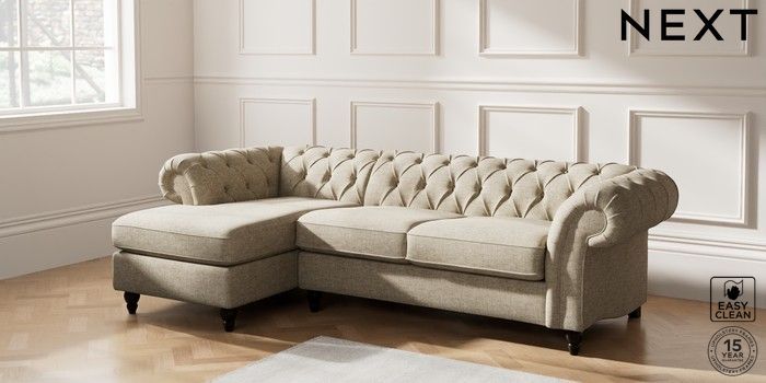 7.2.10 Gosford II Deep Sit Medium Sofa Chaise - Left Hand Woven Chenille Easy Clean Mid Natural Low Turned - Dark | Made Click here to use our website with more accessibility support, for example screen readers