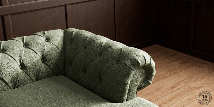 7.2.10 Gosford II Deep Sit Medium Sofa Chaise - Right Hand Boucle Chenille Dark Moss Green Castor - Light | Made Click here to use our website with more accessibility support, for example screen readers