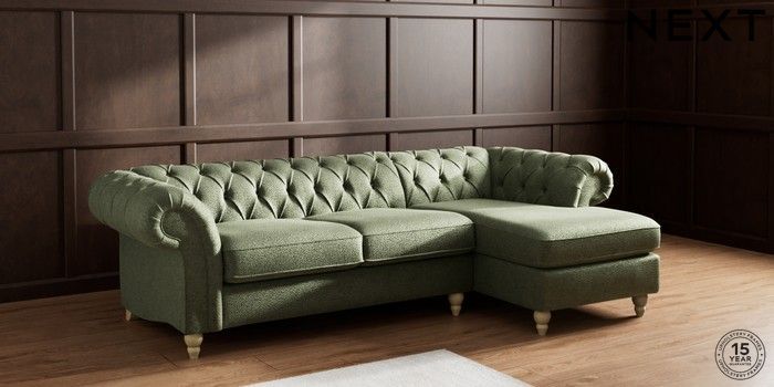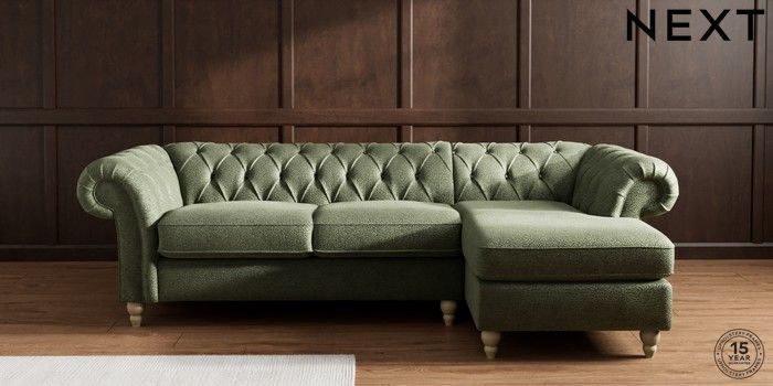 7.2.10 Gosford II Deep Sit Medium Sofa Chaise - Right Hand Boucle Chenille Dark Moss Green Low Turned - Light | Made Click here to use our website with more accessibility support, for example screen readers