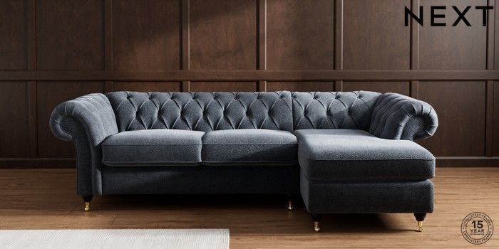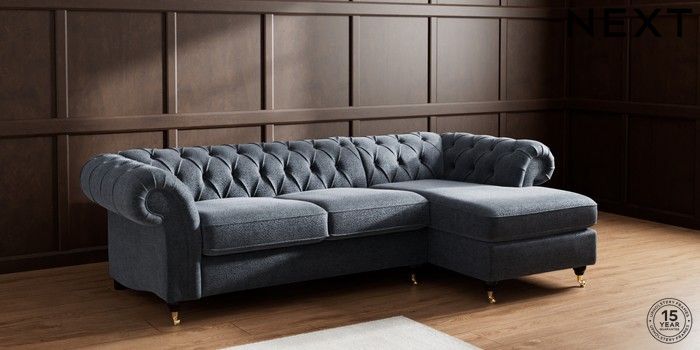 7.2.10 Gosford II Deep Sit Medium Sofa Chaise - Right Hand Boucle Chenille Dark Slate Blue Castor - Dark | Made Click here to use our website with more accessibility support, for example screen readers