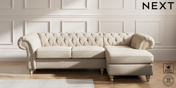 7.2.10 Gosford II Deep Sit Medium Sofa Chaise - Right Hand Boucle Weave Easy Clean Dark Natural Low Turned - Light | Made Click here to use our website with more accessibility support, for example screen readers