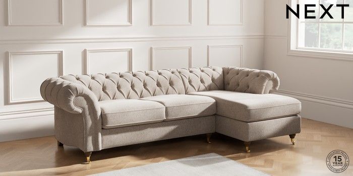 7.2.10 Gosford II Deep Sit Medium Sofa Chaise - Right Hand Chunky Chenille Light Dove Castor - Mid | Made Click here to use our website with more accessibility support, for example screen readers