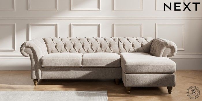 7.2.10 Gosford II Deep Sit Medium Sofa Chaise - Right Hand Chunky Chenille Light Dove Low Turned - Mid | Made Click here to use our website with more accessibility support, for example screen readers