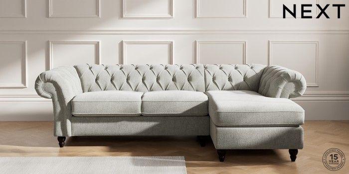7.2.10 Gosford II Deep Sit Medium Sofa Chaise - Right Hand Chunky Chenille Light Grey Low Turned - Dark | Made Click here to use our website with more accessibility support, for example screen readers