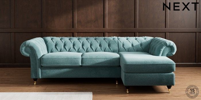 7.2.10 Gosford II Deep Sit Medium Sofa Chaise - Right Hand Chunky Chenille Mid Teal Green Castor - Dark | Made Click here to use our website with more accessibility support, for example screen readers