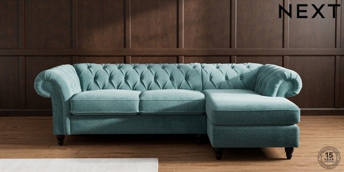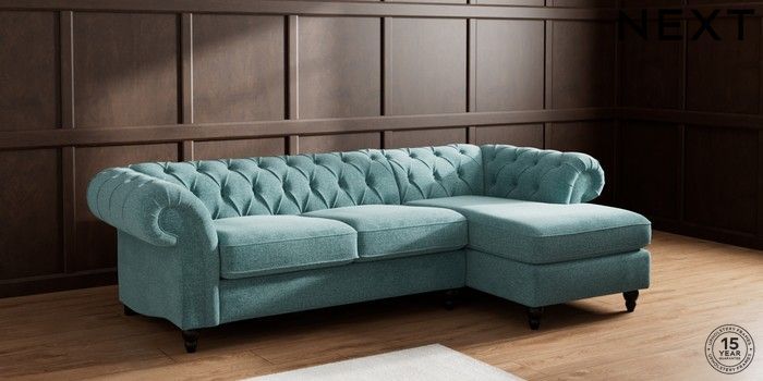 7.2.10 Gosford II Deep Sit Medium Sofa Chaise - Right Hand Chunky Chenille Mid Teal Green Low Turned - Dark | Made Click here to use our website with more accessibility support, for example screen readers