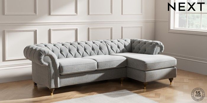 7.2.10 Gosford II Deep Sit Medium Sofa Chaise - Right Hand Chunky Marl Mid Grey Modern Turned Metal Cap - Mid | Made Click here to use our website with more accessibility support, for example screen readers