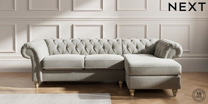 7.2.10 Gosford II Deep Sit Medium Sofa Chaise - Right Hand Chunky Texture Dove Low Turned - Light | Made Click here to use our website with more accessibility support, for example screen readers