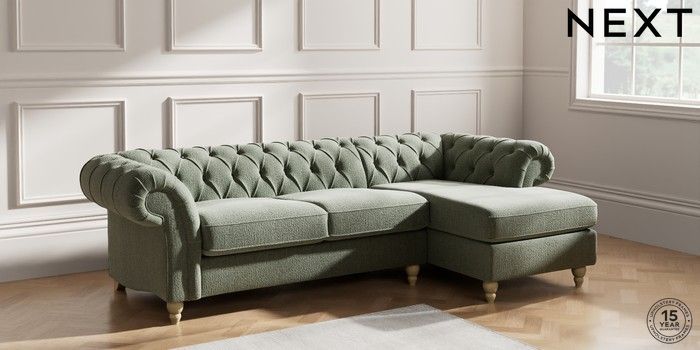 7.2.10 Gosford II Deep Sit Medium Sofa Chaise - Right Hand Chunky Texture Mid Forest Green Low Turned - Light | Made Click here to use our website with more accessibility support, for example screen readers
