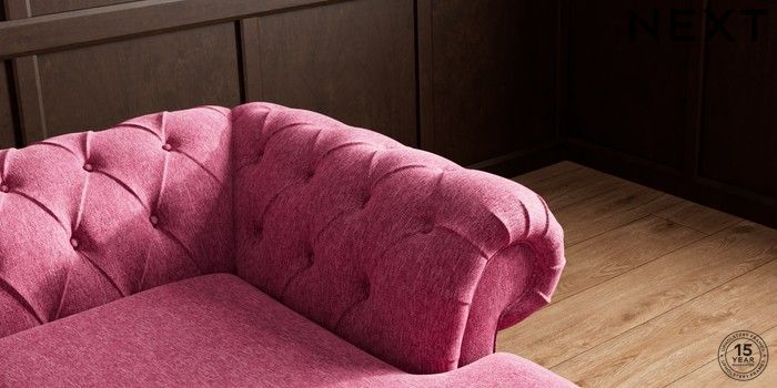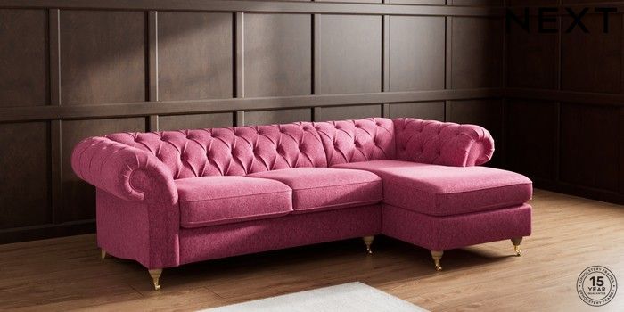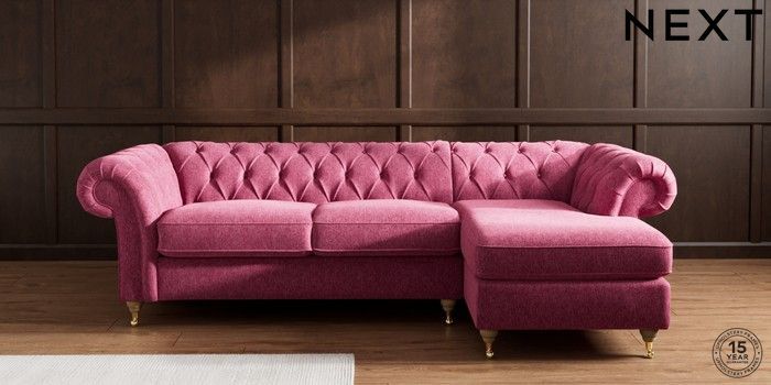 7.2.10 Gosford II Deep Sit Medium Sofa Chaise - Right Hand Cotswold Chenille Dark Raspberry Pink Castor - Light | Made Click here to use our website with more accessibility support, for example screen readers