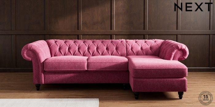 7.2.10 Gosford II Deep Sit Medium Sofa Chaise - Right Hand Cotswold Chenille Dark Raspberry Pink Low Turned - Dark | Made Click here to use our website with more accessibility support, for example screen readers