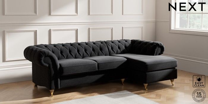 7.2.10 Gosford II Deep Sit Medium Sofa Chaise - Right Hand Fine Chenille Easy Clean Black Castor - Light | Made Click here to use our website with more accessibility support, for example screen readers