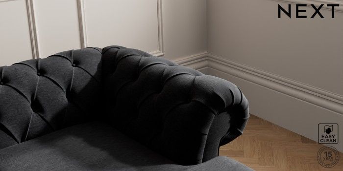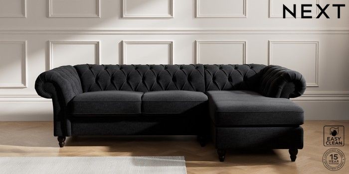 7.2.10 Gosford II Deep Sit Medium Sofa Chaise - Right Hand Fine Chenille Easy Clean Black Low Turned - Dark | Made Click here to use our website with more accessibility support, for example screen readers