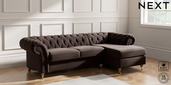 7.2.10 Gosford II Deep Sit Medium Sofa Chaise - Right Hand Fine Chenille Easy Clean Chocolate Brown Castor - Light | Made Click here to use our website with more accessibility support, for example screen readers