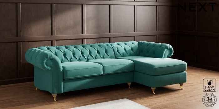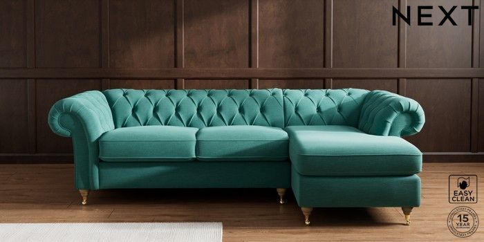 7.2.10 Gosford II Deep Sit Medium Sofa Chaise - Right Hand Fine Chenille Easy Clean Dark Juniper Green Castor - Light | Made Click here to use our website with more accessibility support, for example screen readers