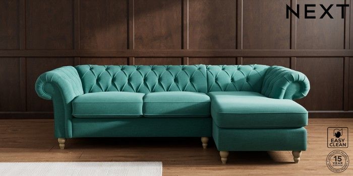7.2.10 Gosford II Deep Sit Medium Sofa Chaise - Right Hand Fine Chenille Easy Clean Dark Juniper Green Low Turned - Light | Made Click here to use our website with more accessibility support, for example screen readers
