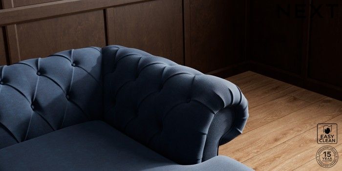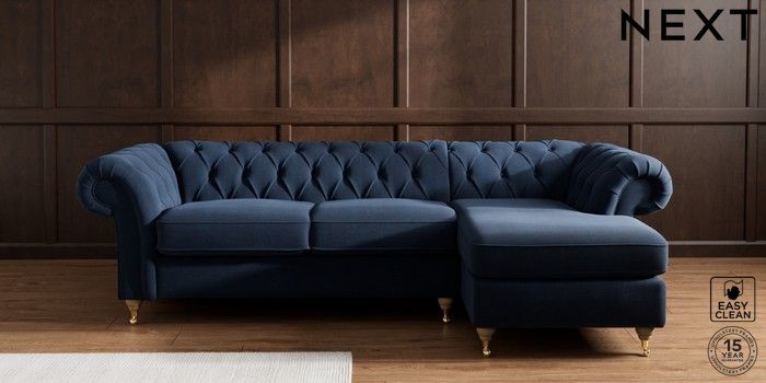 7.2.10 Gosford II Deep Sit Medium Sofa Chaise - Right Hand Fine Chenille Easy Clean Dark Navy Blue Castor - Light | Made Click here to use our website with more accessibility support, for example screen readers