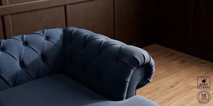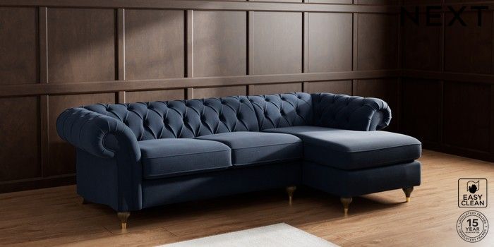 7.2.10 Gosford II Deep Sit Medium Sofa Chaise - Right Hand Fine Chenille Easy Clean Dark Navy Blue Modern Turned Metal Cap - Mid | Made Click here to use our website with more accessibility support, for example screen readers