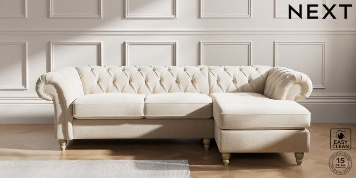 7.2.10 Gosford II Deep Sit Medium Sofa Chaise - Right Hand Fine Chenille Easy Clean Oyster Low Turned - Light | Made Click here to use our website with more accessibility support, for example screen readers