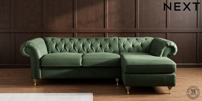 7.2.10 Gosford II Deep Sit Medium Sofa Chaise - Right Hand Luxe Chenille Dark Green Castor - Light | Made Click here to use our website with more accessibility support, for example screen readers