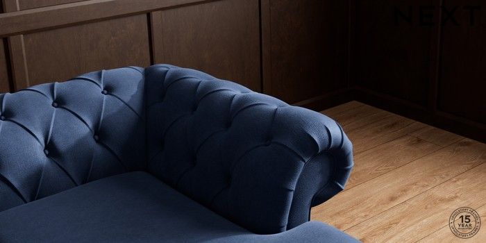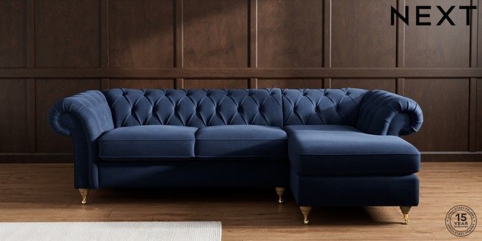 7.2.10 Gosford II Deep Sit Medium Sofa Chaise - Right Hand Luxe Chenille Navy Blue Castor - Light | Made Click here to use our website with more accessibility support, for example screen readers