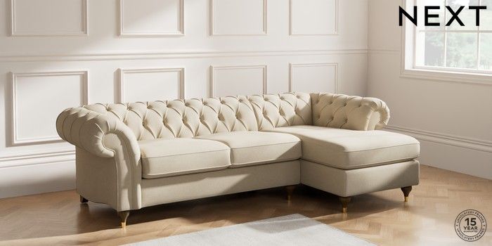 7.2.10 Gosford II Deep Sit Medium Sofa Chaise - Right Hand Natural Mix Light Natural Modern Turned Metal Cap - Mid | Made Click here to use our website with more accessibility support, for example screen readers