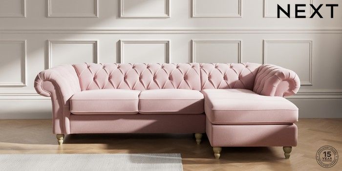 7.2.10 Gosford II Deep Sit Medium Sofa Chaise - Right Hand Natural Mix Light Rose Pink Low Turned - Light | Made Click here to use our website with more accessibility support, for example screen readers