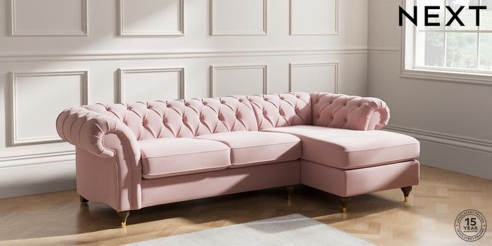 7.2.10 Gosford II Deep Sit Medium Sofa Chaise - Right Hand Natural Mix Light Rose Pink Modern Turned Metal Cap - Mid | Made Click here to use our website with more accessibility support, for example screen readers