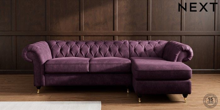 7.2.10 Gosford II Deep Sit Medium Sofa Chaise - Right Hand Plush Chenille Dark Plum Purple Castor - Dark | Made Click here to use our website with more accessibility support, for example screen readers