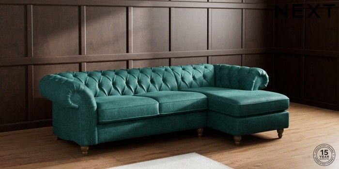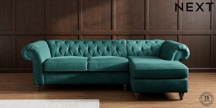 7.2.10 Gosford II Deep Sit Medium Sofa Chaise - Right Hand Plush Chenille Dark Teal Green Low Turned - Mid | Made Click here to use our website with more accessibility support, for example screen readers