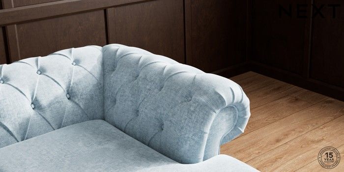 7.2.10 Gosford II Deep Sit Medium Sofa Chaise - Right Hand Plush Chenille Light Blue Modern Turned Metal Cap - Mid | Made Click here to use our website with more accessibility support, for example screen readers