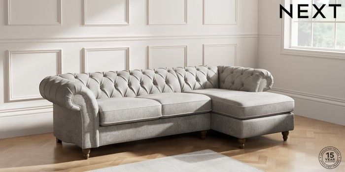 7.2.10 Gosford II Deep Sit Medium Sofa Chaise - Right Hand Plush Chenille Light Grey Low Turned - Mid | Made Click here to use our website with more accessibility support, for example screen readers