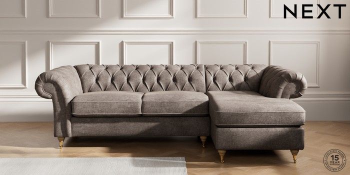 7.2.10 Gosford II Deep Sit Medium Sofa Chaise - Right Hand Plush Chenille Mink Brown Castor - Light | Made Click here to use our website with more accessibility support, for example screen readers