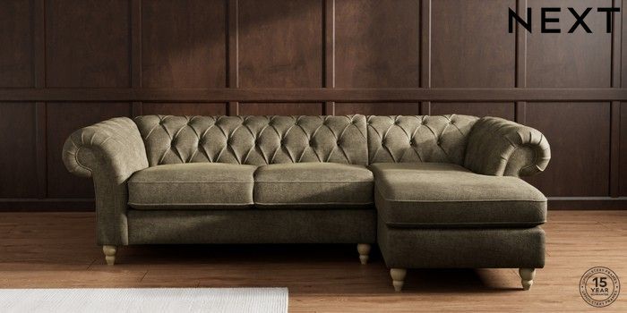 7.2.10 Gosford II Deep Sit Medium Sofa Chaise - Right Hand Plush Chenille Moss Green Low Turned - Light | Made Click here to use our website with more accessibility support, for example screen readers