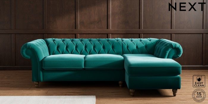 7.2.10 Gosford II Deep Sit Medium Sofa Chaise - Right Hand Plush Velvet Easy Clean Juniper Green Low Turned - Mid | Made Click here to use our website with more accessibility support, for example screen readers