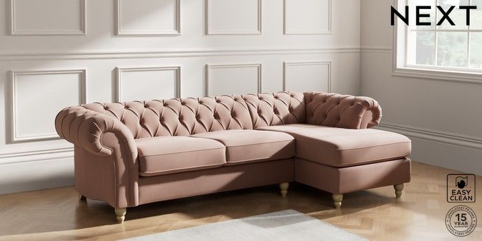 7.2.10 Gosford II Deep Sit Medium Sofa Chaise - Right Hand Plush Velvet Easy Clean Mid Natural Low Turned - Light | Made Click here to use our website with more accessibility support, for example screen readers