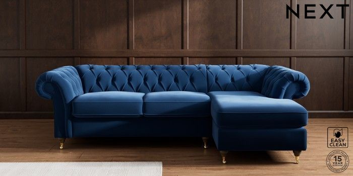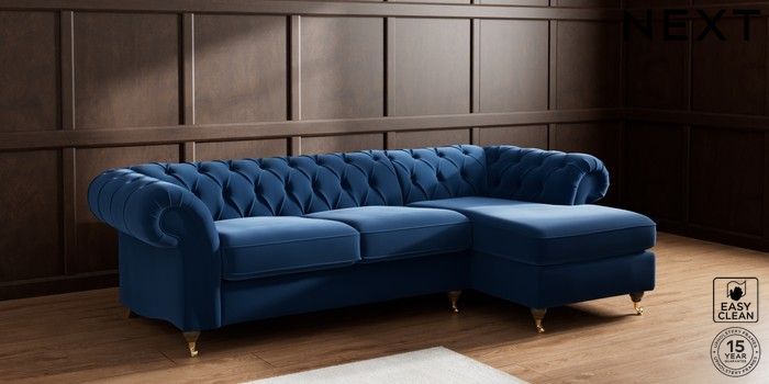 7.2.10 Gosford II Deep Sit Medium Sofa Chaise - Right Hand Plush Velvet Easy Clean Navy Blue Castor - Mid | Made Click here to use our website with more accessibility support, for example screen readers