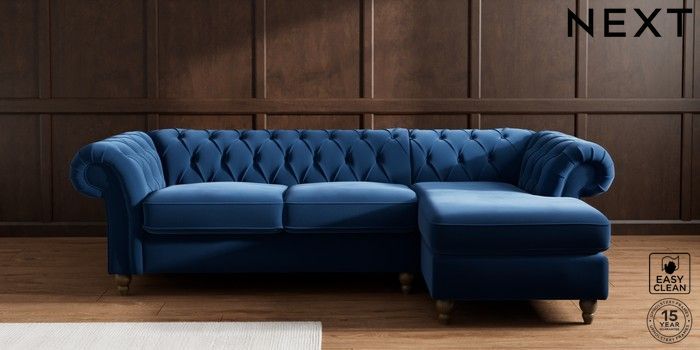 7.2.10 Gosford II Deep Sit Medium Sofa Chaise - Right Hand Plush Velvet Easy Clean Navy Blue Low Turned - Mid | Made Click here to use our website with more accessibility support, for example screen readers