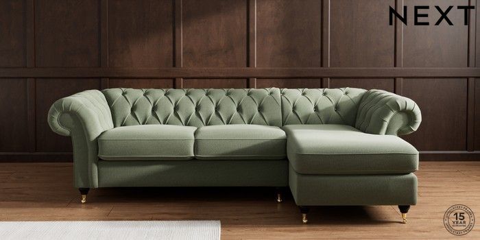 7.2.10 Gosford II Deep Sit Medium Sofa Chaise - Right Hand Relaxed Linen Look Dark Green Castor - Dark | Made Click here to use our website with more accessibility support, for example screen readers