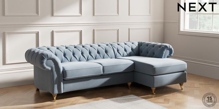 7.2.10 Gosford II Deep Sit Medium Sofa Chaise - Right Hand Relaxed Linen Look Mid Blue Castor - Light | Made Click here to use our website with more accessibility support, for example screen readers