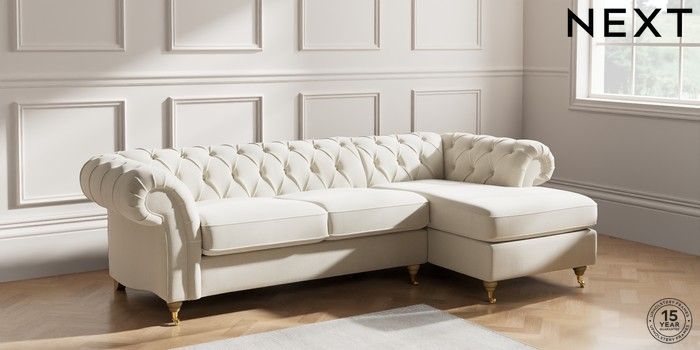 7.2.10 Gosford II Deep Sit Medium Sofa Chaise - Right Hand Relaxed Linen Look Oyster Castor - Light | Made Click here to use our website with more accessibility support, for example screen readers
