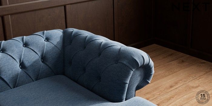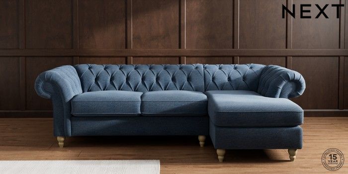 7.2.10 Gosford II Deep Sit Medium Sofa Chaise - Right Hand Ripple Chenille Dark Blue Low Turned - Light | Made Click here to use our website with more accessibility support, for example screen readers